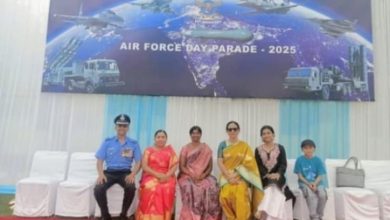 श्रीरामपूर:-माळेवाडीचे भुमीपुत्र विंग कमांडर देवेंद्र औताडे यांना दिल्ली येथे शौर्य पदक सोहळ्यासाठी त्यांच्या मातोश्री आणि प्रथम महिला सरपंच उपस्थित.