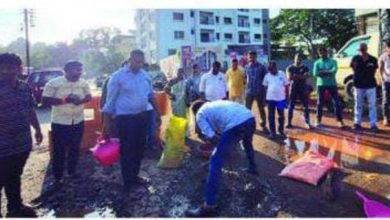 कणकवली-आचरा मार्गावरील खड्डे ग्रामस्थांनी बुजवले सार्वजनिक बांधकाम विभागाचा केला निषेध : कलमठ हद्दीतील खड्डे न बुजवल्यास आंदोलन.