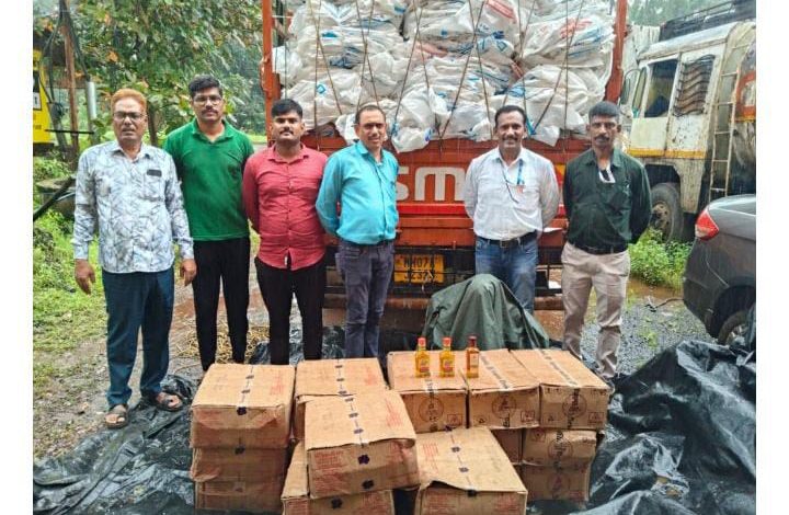कणकवली:-गोव्याहून मुंबईच्या दिशेने जात असलेल्या, गोवा बनावटीची दारू वाहतूक करत असलेल्या ट्रकवर राज्य उत्पादन शुल्क कणकवलीच्या पथकाने कारवाई केली. गुरुवारी सकाळी १०.३० वा. सुमारास ओसरगांव येथील टोलनाक्यानजीक करण्यात आलेल्या या कारवाईत २ लाख ४० हजाराची दारू, ७ लाखांचा ट्रक मिळून ९ लाख ४० हजार रुपयांचा मुद्देमाल जप्त करण्यात आला. याप्रकरणी ट्रकचालक राजबीरसिंह छेदीलालसिंह (४१, मूळ इन्सुली, ता. सावंतवाडी व सध्या रा. ओसरगांव) याच्यावर गुन्हा दाखल करण्यात आला आहे. राजबीरसिंह हा मुळचा पंजाबी असल्याची माहिती एक्साईजच्या कार्यालयातून देण्यात आली आहे. महामार्गावरून एका ट्रकद्वारे चोटी दारूवाहतूक सुरु असल्याची माहिती एक्साईजच्या कणकवलीच्या पथकाला मिळाली. त्यानुसार पथकाने ओसरागांव टोलनाका गाठला. सकाळी १०.३० वा. सुमारास मुंबईच्या दिशेने जात असलेला एमएच ०७ एजे२३२५ हा ट्रक पथकाने थांबविला. ट्रकचालक राजबीरसिंह विसंगत उत्तरे देत असल्याने एक्साईजच्या पथकाला संशय आला. पथकाने ट्रकचा हौदा उघडला असता आत मध्ये एम आय डी सी मध्ये वापरले जाणारे प्लास्टिक आढळून आले मात्र पुढील पाहणीत प्लास्टिकच्या खाली दारूने भरलेले बॉक्स आढळून आले.