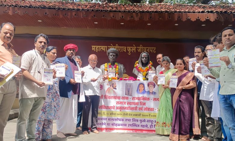 पुणे:-समता भूमीवर शाक्त शिवराज्याभिषेक, सत्यशोधक समाज स्थापना दिन व संविधानाचे अमृत महोत्सवी वर्ष सोहळा -२०२५ कार्यक्रम पत्रिकाचे प्रकाशन सोहळा संपन्न !!!