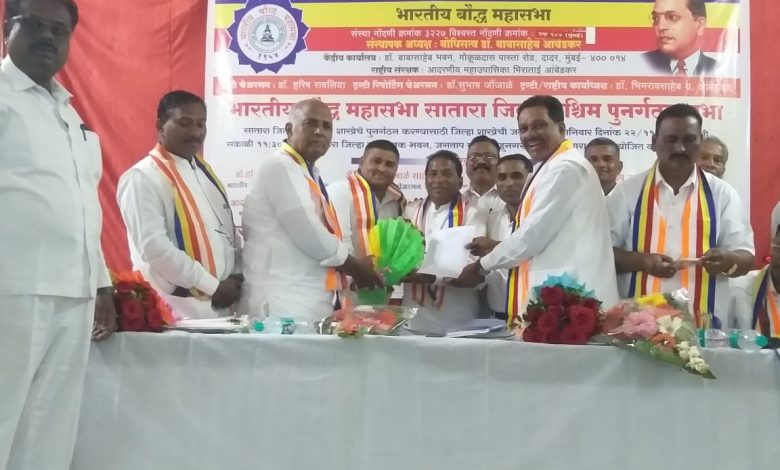 सातारा:भारतीय बौद्ध महासभा या मातृसंस्थेचे ट्रस्टी रिपोर्टिंग चेअरमन ॲड.सुभाष जौंजाळे साहेब, ट्रस्टी तथा राष्ट्रीय उपाध्यक्ष, केंद्रीय कार्यालय प्रमुख आदरणीय डॉ.एस.के.भंडारे साहेब, ट्रस्टी डॉ.राजाराम बडगे साहेब, ट्रस्टी अरुण भाऊ पोळ, राष्ट्रीय सचिव तथा महाराष्ट्र प्रभारी आदरणीय भिकाजी कांबळे साहेब, महाराष्ट्र राज्य अध्यक्ष आदरणीय यु.जी.बोराडे गुरुजी, महाराष्ट्र संघटक आणि पूणे, सातारा विभाग प्रमुख आदरणीय दादासाहेब भोसले आणि आदरणीय विजय ओव्हाळ साहेब यांच्या प्रमुख उपस्थितीत सातारा जिल्हा पश्चिमची कार्यकारिणी पदाधिकारी पुनर्गठन सभा शनिवार दिनांक २२नोव्हेंबर २०२४ रोजी पार पडली.
