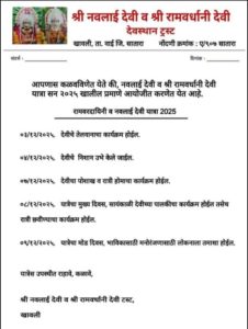 खावली:-(वाई)- राज्यातील जागृत ग्रामदैवत असलेल्या आई खवलाई देवी,नवलाई देवी आणि वरदायीनी देवी ची वार्षिक यात्रा आठ आणि नऊ डिसेंबर रोजी भरणार.