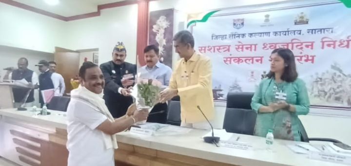 आज सातारा जिल्ह्याचे पालकमंत्री नामदार शंभूराजे देसाई, जिल्हाधिकारी संतोष पाटील ,जिल्हा परिषदेच्या सी.ई.ओ.यशानी नागराजन ,जिल्हा सैनिक कल्याण अधिकारी लेफ्टनंट कर्नल सतीश हांगे, निवासी उपजिल्हाधिकारी नागेश पाटील ,आजी-माजी सैन्य अधिकारी ,सैनिक वीर माता – पिता – नारी यांच्या उपस्थितीत श्री माळवदे यांचा सत्कार करण्यात आला.