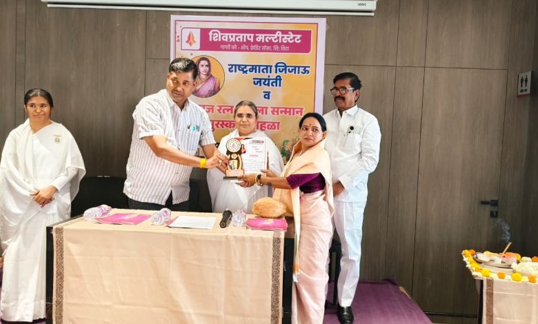 शिवप्रताप मल्टीस्टेटच्या वतीने राजमाता जिजाऊ समाजरत्न महिला सन्मान पुरस्कार वितरण.