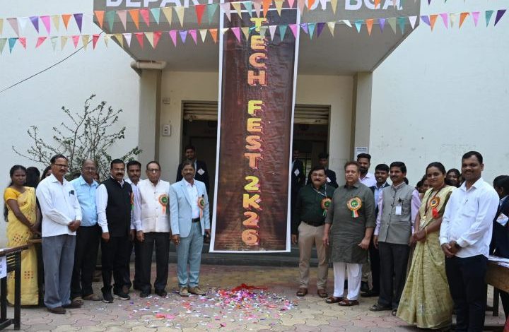 वाई, दि. १८ मार्च २०२६ येथील किसन वीर महाविद्यालयाच्या बी.सी.ए विभागाच्या वतीने आयोजित करण्यात आलेला ‘टेक फेस्ट’ कार्यक्रम उत्साहपूर्ण आणि प्रेरणादायी वातावरणात मोठ्या जल्लोषात पार पडला. या कार्यक्रमाचे उद्घाटन जनता शिक्षण संस्थेचे अध्यक्ष मा. मदनदादा भोसले यांच्या हस्ते करण्यात आले.