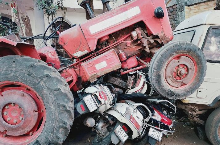 मिळालेल्या माहितीनुसार, संबंधित ट्रॅक्टर उतारावरून जात असताना अचानक ब्रेक लागल्याने वाहनावरील नियंत्रण सुटले. चालकाने ट्रॅक्टर थांबवण्याचा प्रयत्न केला, परंतु तो निष्फळ ठरला आणि ट्रॅक्टर थेट पार्किंगमध्ये उभ्या असणाऱ्या वाहनांवर जाऊन आदळला.