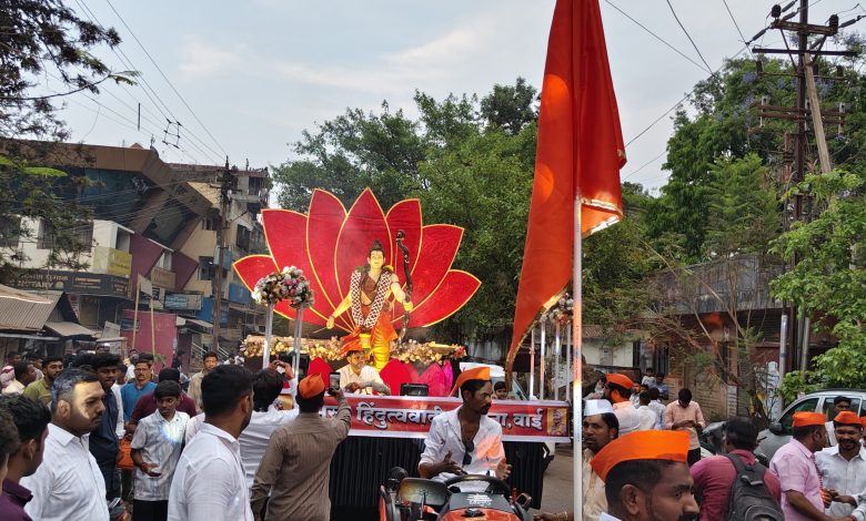 वाई, दि. २७ : ‘जय श्रीराम’च्या दणदणीत घोषणांनी वाई शहर अक्षरशः दणाणून गेले, जेव्हा समस्त हिंदुत्ववादी संघटनांच्या वतीने भव्य शोभायात्रा उत्साहात पार पडली. भगव्या ध्वजांनी सजलेली ही यात्रा आणि त्यात सहभागी झालेला हजारोंचा जनसागर यामुळे संपूर्ण शहर भक्तिमय वातावरणात न्हाऊन निघाले.