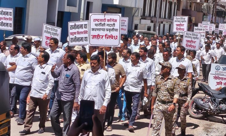 सोमवारी सकाळी अकरा वाजता महागणपती घाटावरून निषेध मोर्चाला सुरुवात झाली. मोर्चा किसनवीर चौक मार्गे विराज शिंदे यांच्या घरावर पोहोचला. यावेळी “राजीनामा द्या”, “पुन्हा निवडणुकीला सामोरे जा” अशा घोषणांनी परिसर दणाणून गेला. कार्यकर्त्यांच्या संतापामुळे काही काळ वातावरण तंग झाले होते.