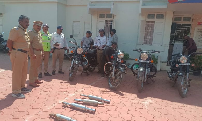 भुईज पोलीस ठाण्याकडून कर्णकर्कश आवाज करणाऱ्या बुलेट मोटारसायकलींवर कारवाई.
