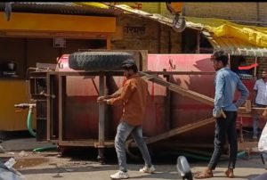 2) साताऱ्यात राधिका रस्त्यावर दारू दुकानासमोरच पाण्याच्या टँकर झाला आडवा….